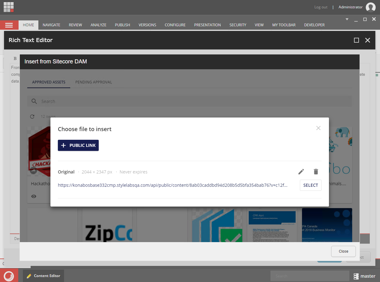 Lets take a look at how this looks in the Sitecore XP by using the Sitecore Content Hub DAM Connector.