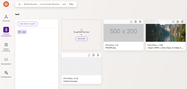 The next piece of data that can be stored inside Xperience by Kentico is media items. All of the assets like images or files can be uploaded there and organized in the folders structure: