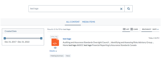 As you can see, in this example the “test logo” item has two tags, “Meeting Summary” and “News”.