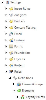 Create a new element: Loyalty Points in /sitecore/system/Settings/Rules/Definitions/Elements