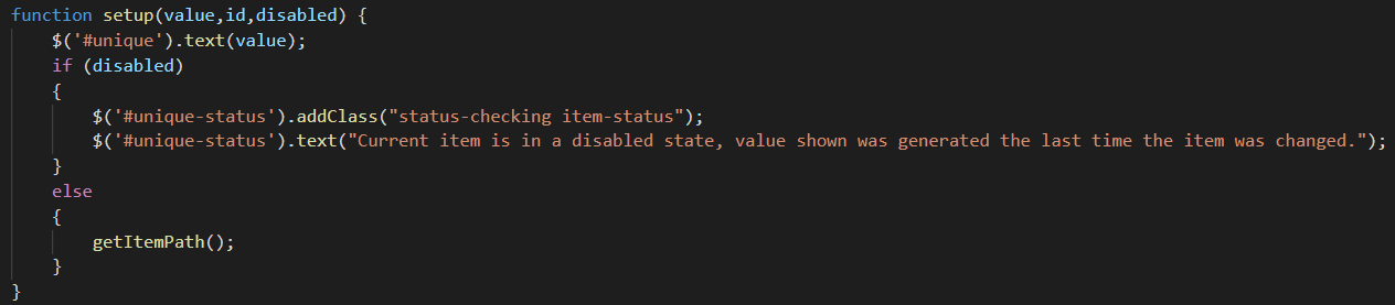 We need a function that set's up the Custom Element and does the processing. I have the following setup function which takes in the values from the initialize function and sets the text value.