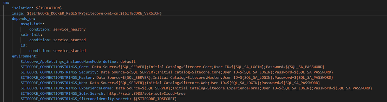 Sitecore in containers uses config builder to inject environment settings into the solution and configuration – we will use it to inject our connection to custom database. (https://learn.microsoft.com/en-us/aspnet/config-builder)