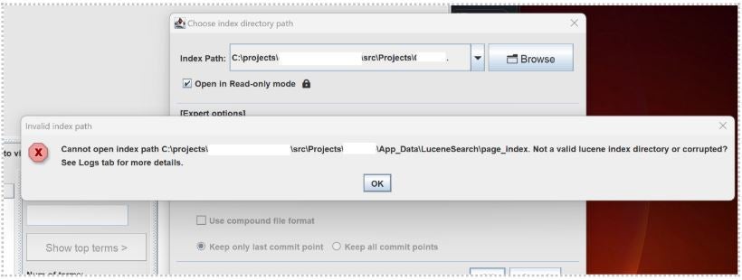 If you try to download a new version of Lucene and use Luke which is included as part of distributed library, you will see an error like this: