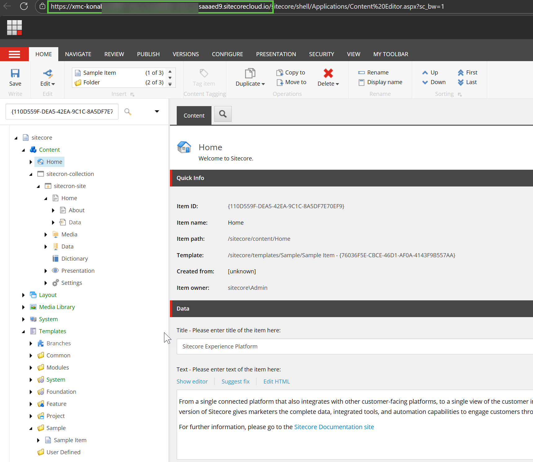 Once the deployment is successful, you need to determine the instance URL. I went to the content editor. The URL of the content editor is your instance URL.