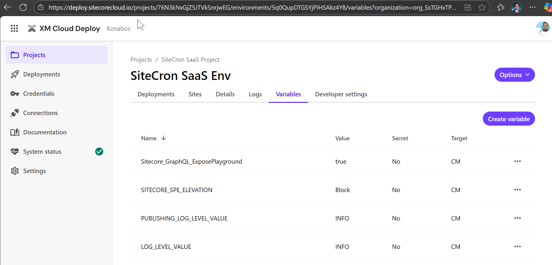 First, navigate to your XM Cloud Deploy portal and add a new variable called Sitecore_GraphQL_ExposePlayground, setting the value to true.