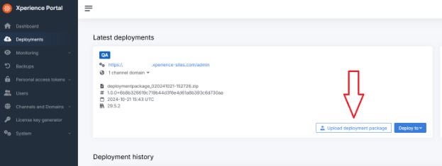 You have already everything you need to update your QA environment. As you probably do not want to change the configuration of your automated deployment you will need to use a manual deployment process. Access your Xperience Portal and go to the deployments section and upload the deployment package: