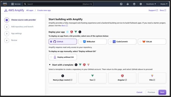 Assuming you already have a GitHub account and the app code is prepared, we can proceed to the next step—deploying the app on AWS Amplify.
