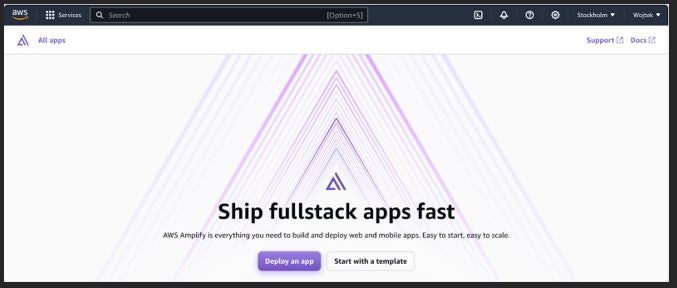 After selecting **AWS Amplify**, you will be redirected to the welcome page. You’ll see two options: **Deploy an App** or **Start with a Template**. In this guide, we will choose **Deploy an App**.