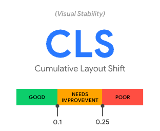 It measures visual stability and measures the amount of unexpected layout shifts of visible page content. To provide a good UX, pages should have a CLS of less than 0.1.