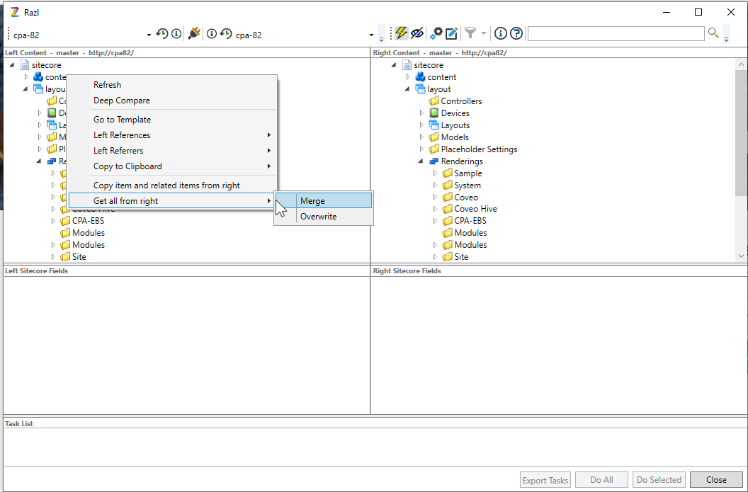 Essentially it allows you to visually compare two Sitecore databases and copy items from one to the other. The interface looks like this: