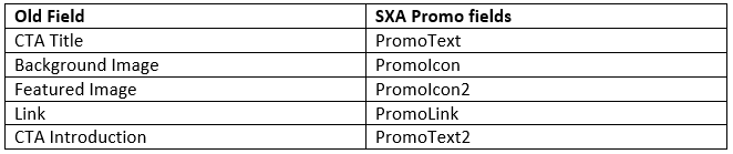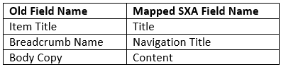 The filed mapping for the old template to the new SXA template is shown below: