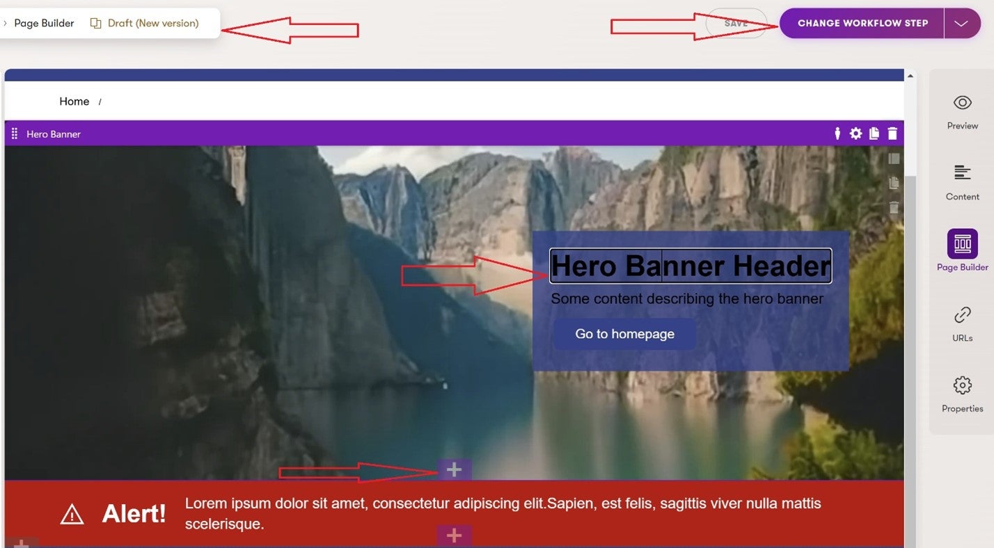 In the end, let’s focus on Edit mode, which allows you to design your page from the available components and manage available settings and content. When you start working on the changes and have workflows set up in place, Edit mode will also let you change a workflow state and publish the final state.