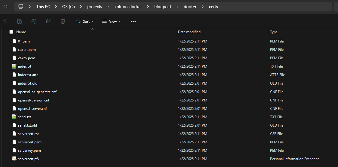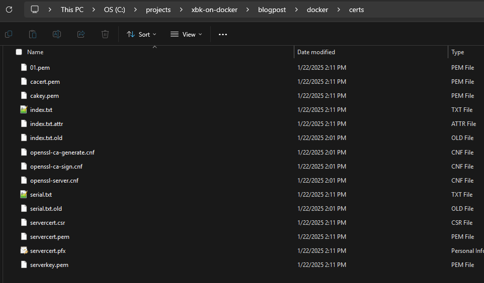 If everything went fine, you should be able to find your certs inside docker/certs directory: