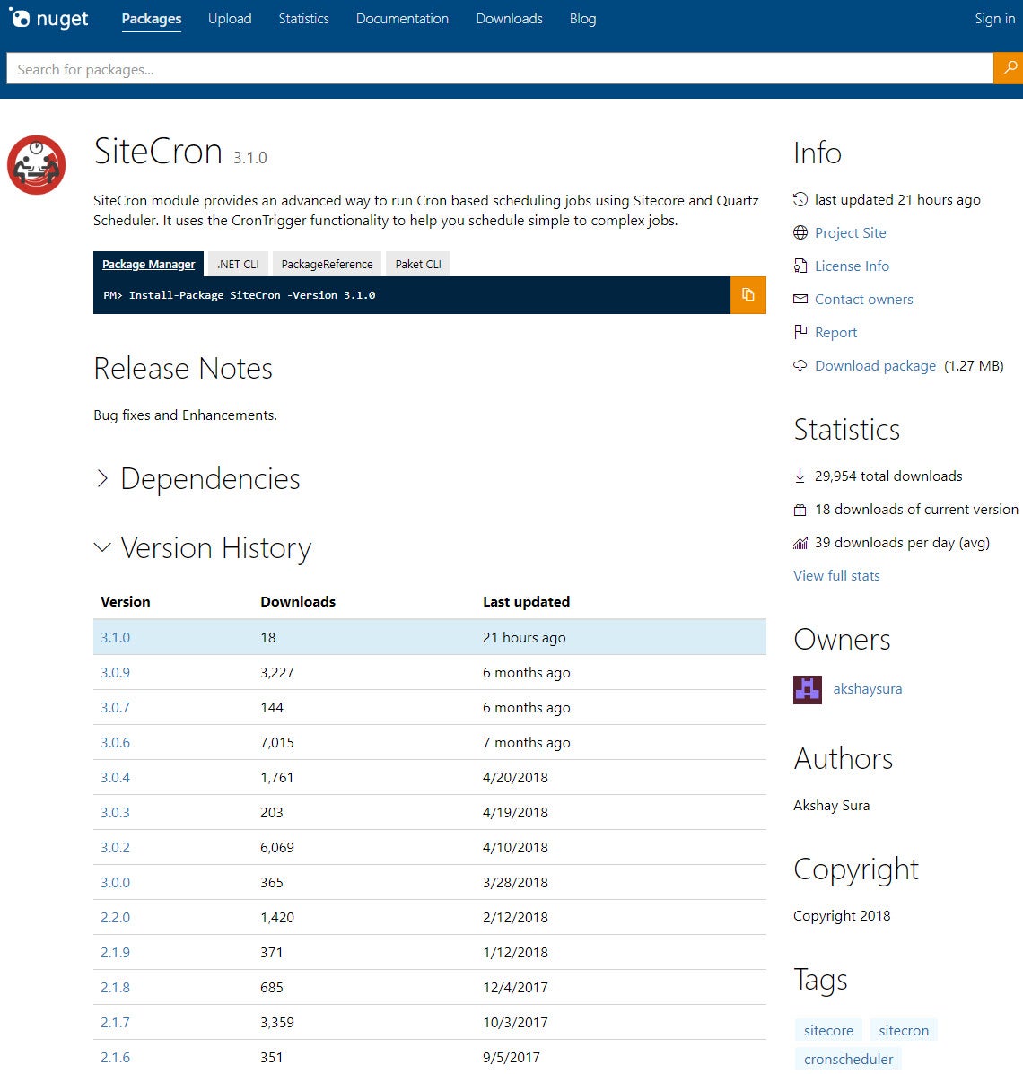 SiteCron 3.1.0 has been released. SiteCron is a scheduling module based on Quartz.NET Job Scheduler. SiteCron can be used to create precision schedule jobs in Sitecore.