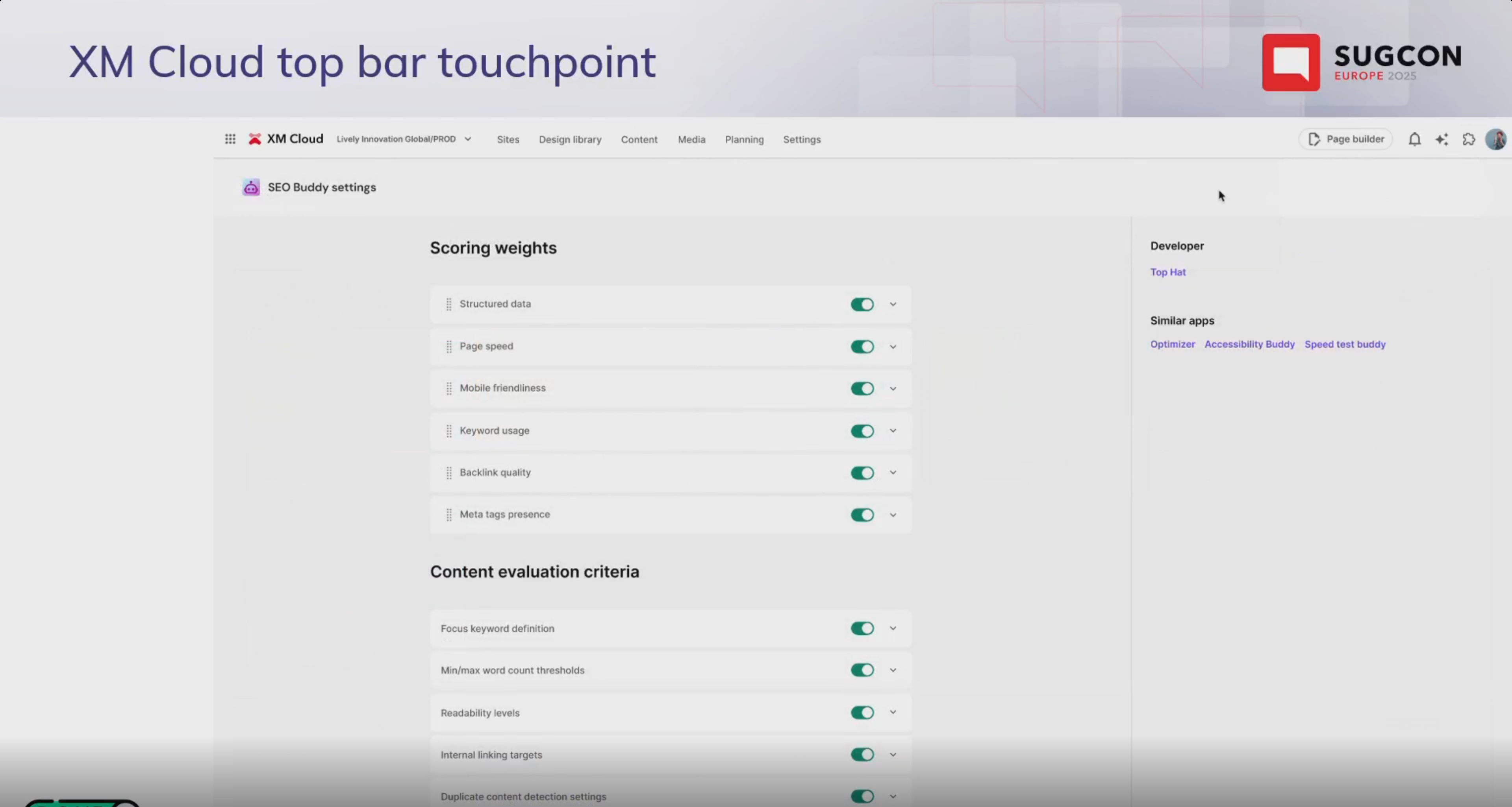 At SUGCON Europe 2025, Sitecore unveiled a comprehensive look at the upcoming Sitecore Marketplace through a highly detailed technical session led by Krassi (Senior Product Manager) and Justin Vogt (Principal Product Manager). This session offered an exclusive deep dive into Marketplace v1, its SDK capabilities, roadmap, and the early access developer program. This session was pivotal for anyone building on XM Cloud or looking to extend Sitecore products with reusable, scalable components.
