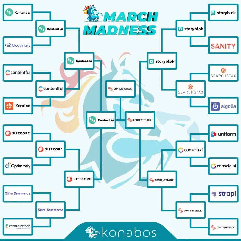 Konabos is thrilled to announce the return of our "March Madness" campaign for its second annual showdown in 2024. Last year, Contentstack clinched the inaugural title in a nail-biting finale against Kontent.ai. As we gear up for another round, expect the competition to be fiercer than ever!