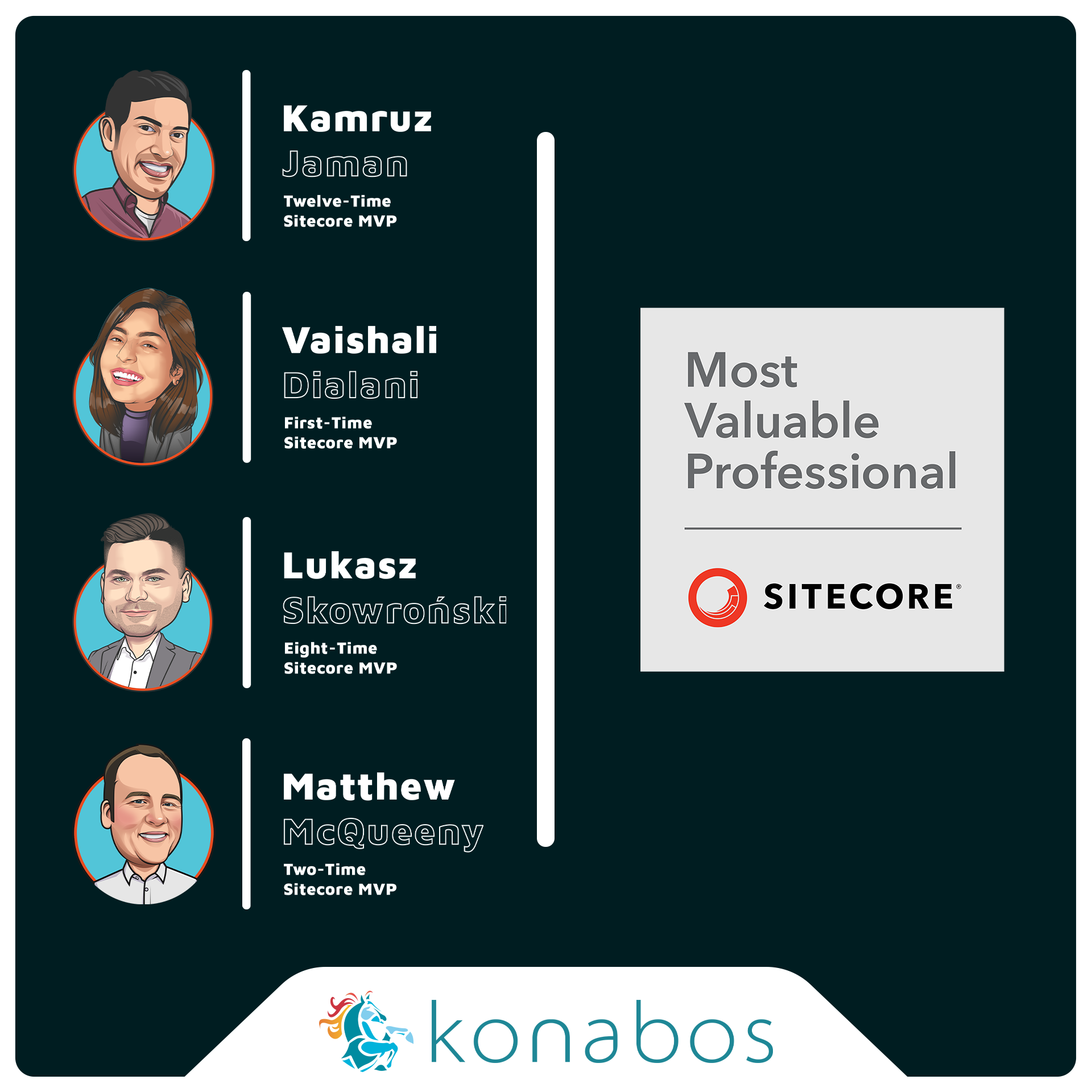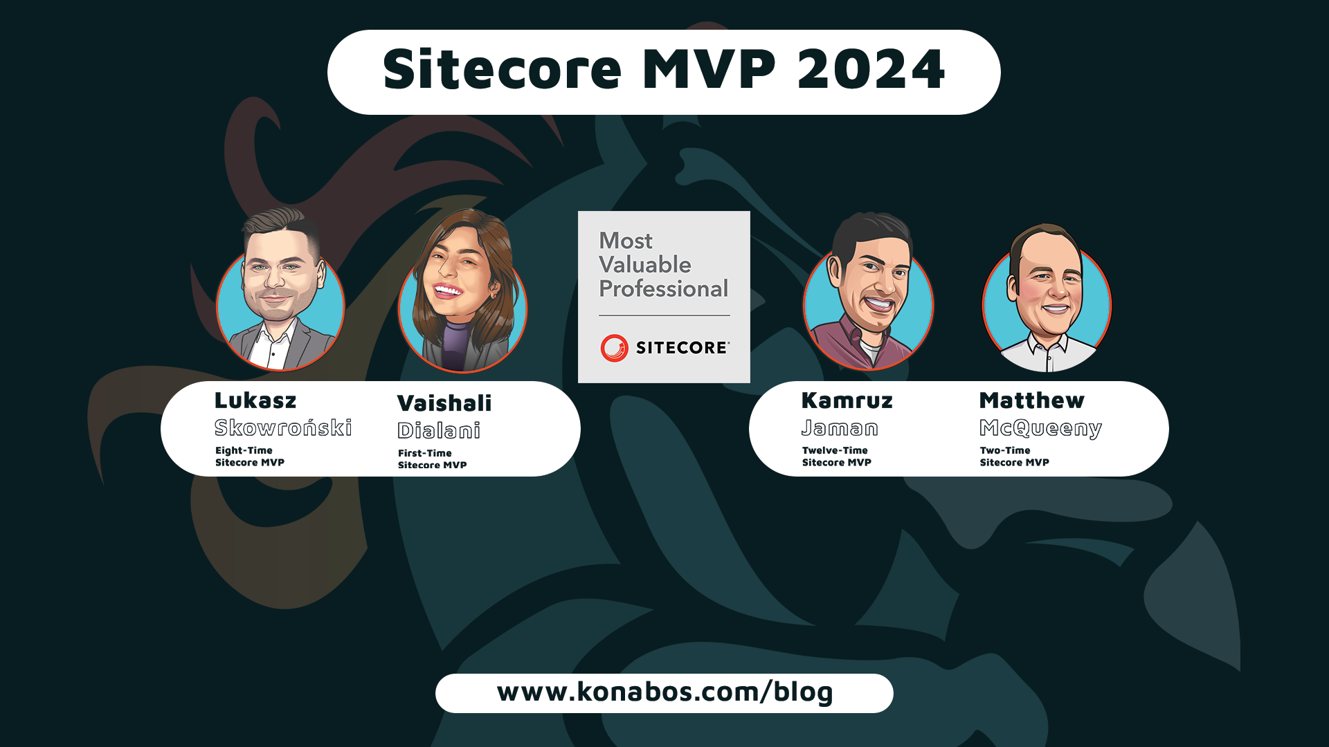 Ottawa, ON, Canada — February 09, 2024 — Konabos, powered by community, today announced that team members Kamruz Jaman, Lukasz Skowroński, Matthew McQueeny, and Vaishali Dialani have been named a Most Valuable Professional (MVP) by Sitecore®, a global leader in end-to-end digital experience management software. Our MVPs were among only 247 worldwide to be named a Sitecore MVP this year.