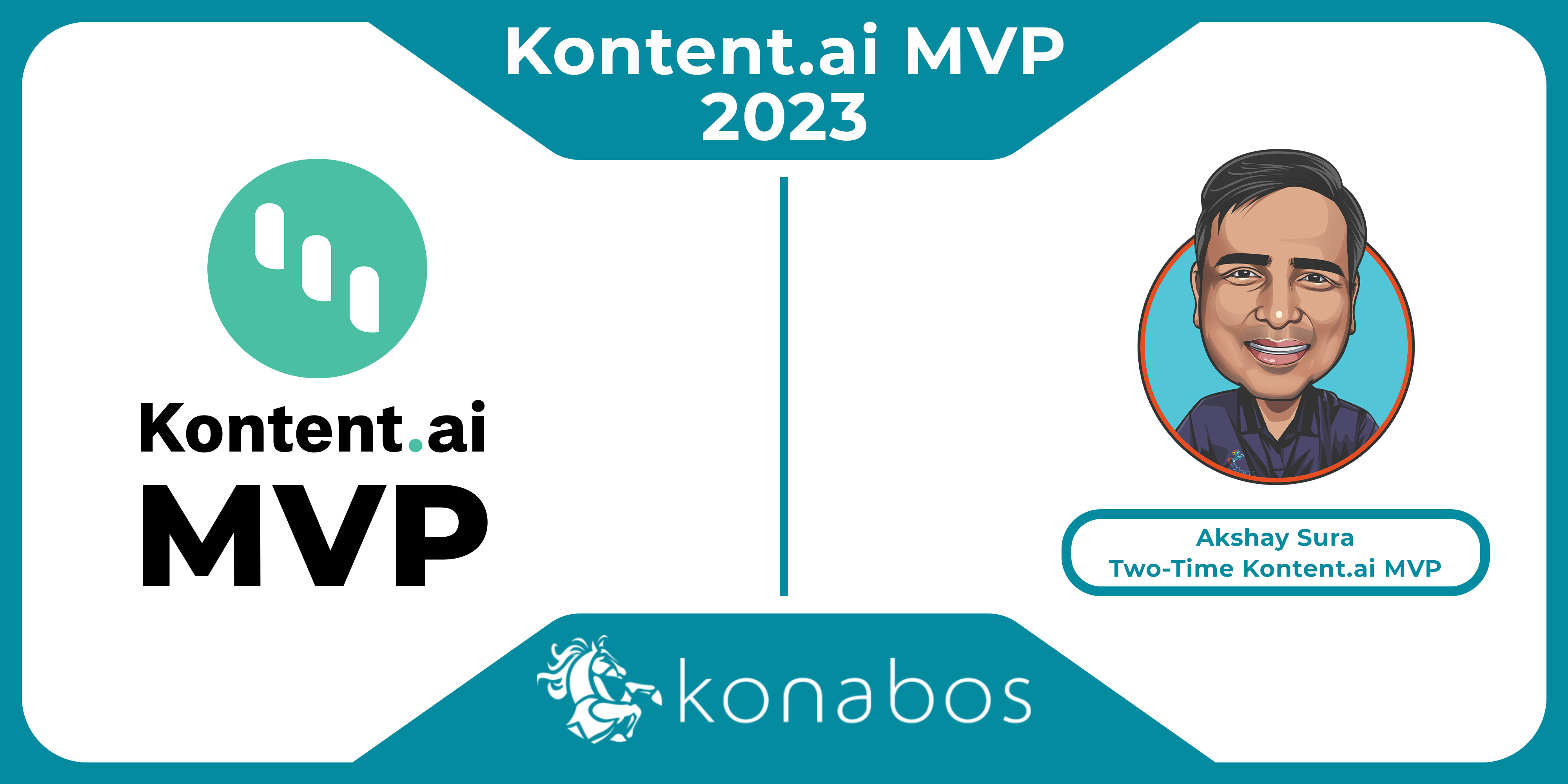 Konabos Partner, Akshay Sura, has been named a 2023 Kontent.ai MVP. It is Sura’s second time earning a Kontent.ai MVP, after doing so in 2022 as well. He is one of only six people in the world to receive the award, and the only individual to have both Kontent.ai and Sitecore MVP titles.