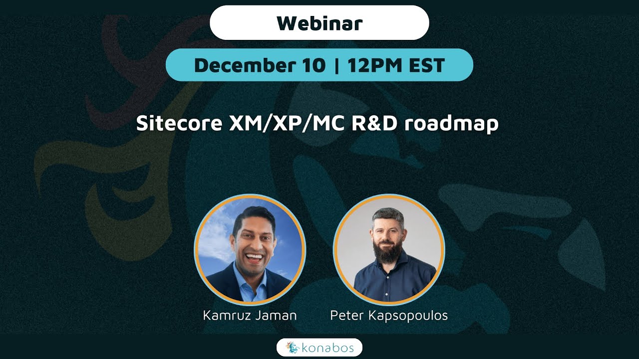 Hi. Good afternoon, everyone and welcome. My name is Kamruz Jaman. I'm from Konabos. We're a full service digital agency based out of Canada and US, we specialize in Sitecore. Hopefully you guys have seen us around from the community. I'm really excited to have Peter Kapsopoulos join us today. I hope I didn't butcher the name Peter. I understand, I recognize, yeah, names. It's very it's very fanatic. It's very fanatic. It's as it's written. But I always have trouble with those. Thank you for joining us today. Yeah, of course, happy to be here. Thanks for having me. I'm extremely excited to have you present the roadmap for XM XP and manage cloud. I know we spoke extensively at Sitecore symposium and at the MVP Summit. There's some really, really exciting things that are coming up in the in the roadmap. I know we discussed a lot of things under NDA, and then there's obviously been a lot of change in the industry over the past few years, obviously the push towards headless and composable over the past few years. But to me, it almost feels like things are coming back around a little bit, where people have gone full headless and kind of kind of realized that actually it's a little bit too far and Sitecore vision from a few years back is actually almost coming back on itself, where people are seeing The benefit of the all in one approach, the need for an editor, a visual editor, the need for in built personalization, and obviously the need for ownership as well data ownership. So I think the people are seeing the benefits of the all in one approach, the need for owning the platform and the and the need for owning the infrastructure.